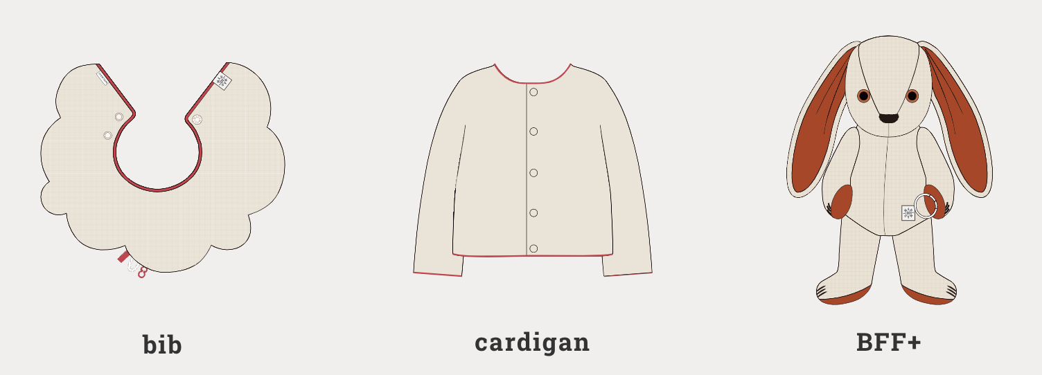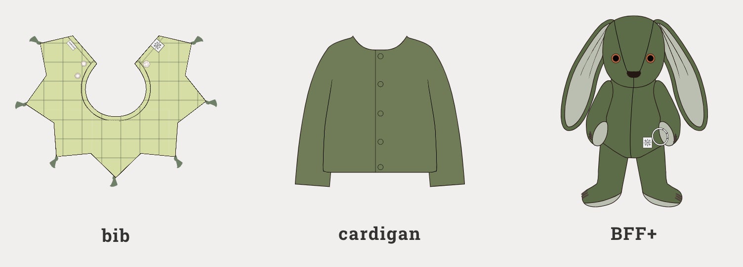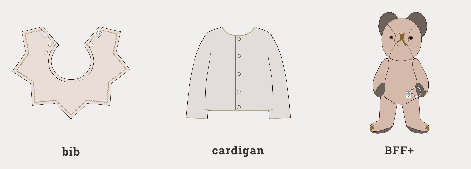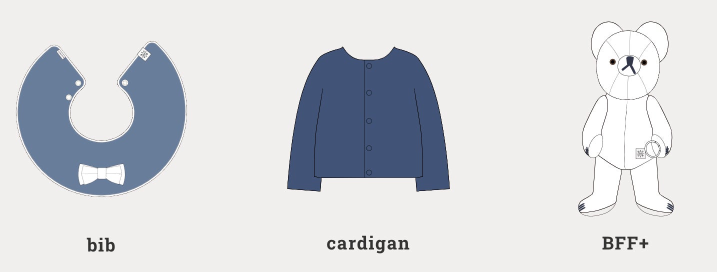 カーディガン、BFF+(多機能ぬいぐるみ)を、都市それぞれの伝統や生活をイメージして表現しました。