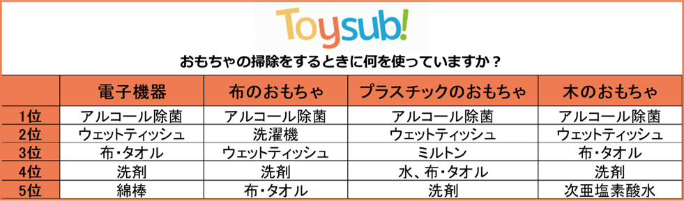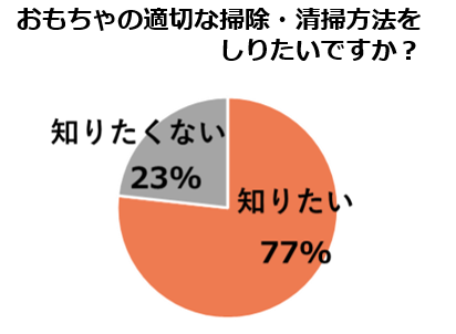 子ども用おもちゃの適切な掃除方法に関心がある人は8割近い!しかし、実際の掃除方法・頻度・時間については多くの方が不十分という結果に 材質別に「理想的なおもちゃの掃除方法」をトイサブ!が解説