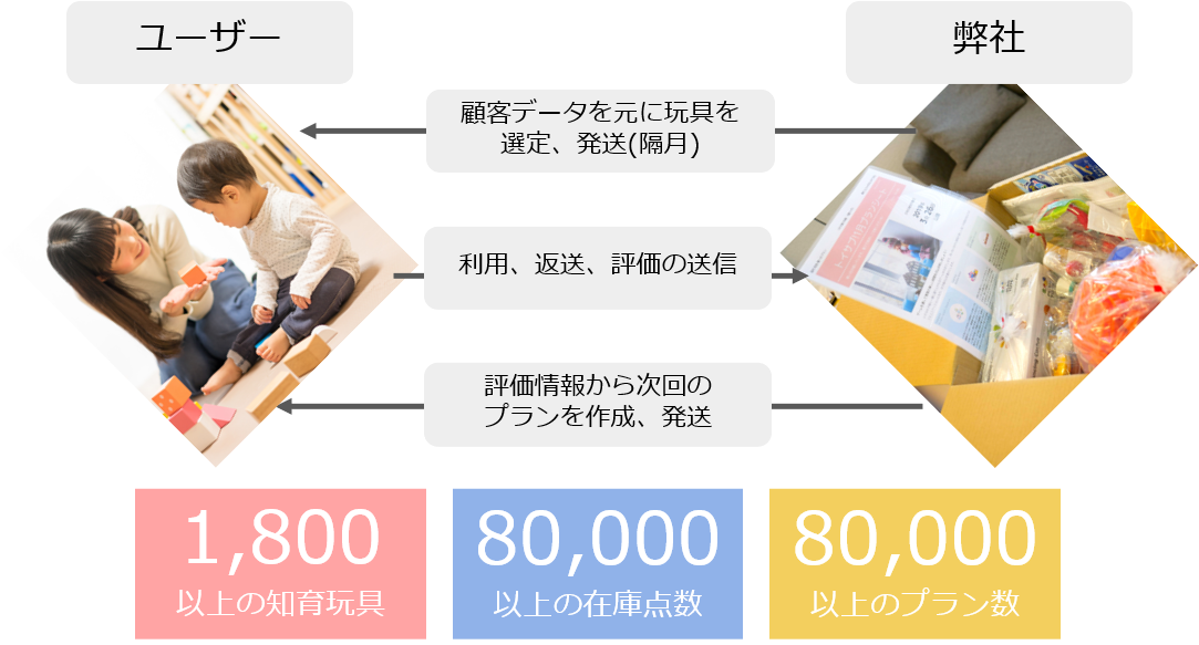 主な事業内容:0歳3か月-満6歳向け知育玩具のサブスクリプション・レンタルサービス「トイサブ!」(https://toysub.net)の運営