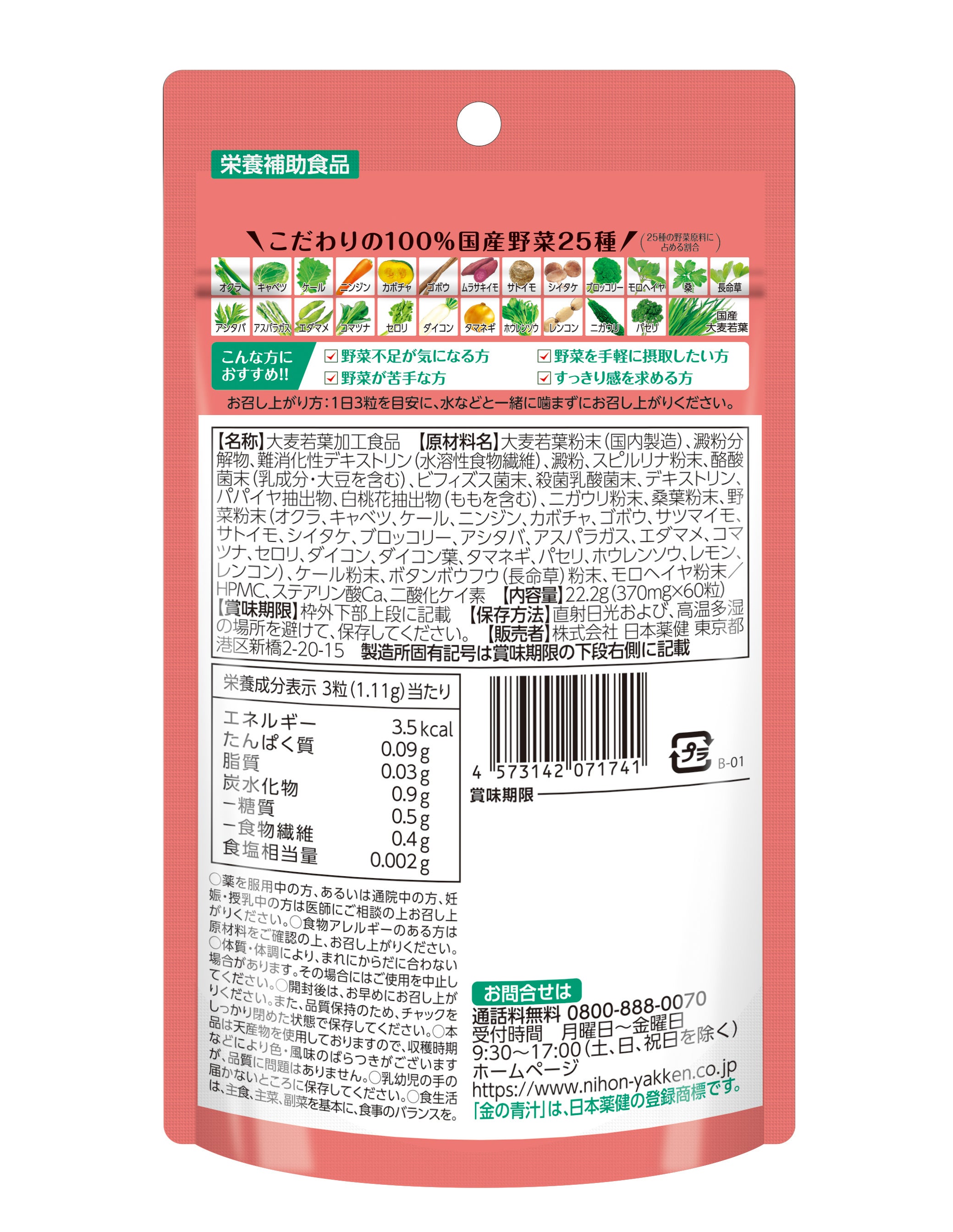 【金の青汁 25種の純国産野菜サプリメントの特徴】