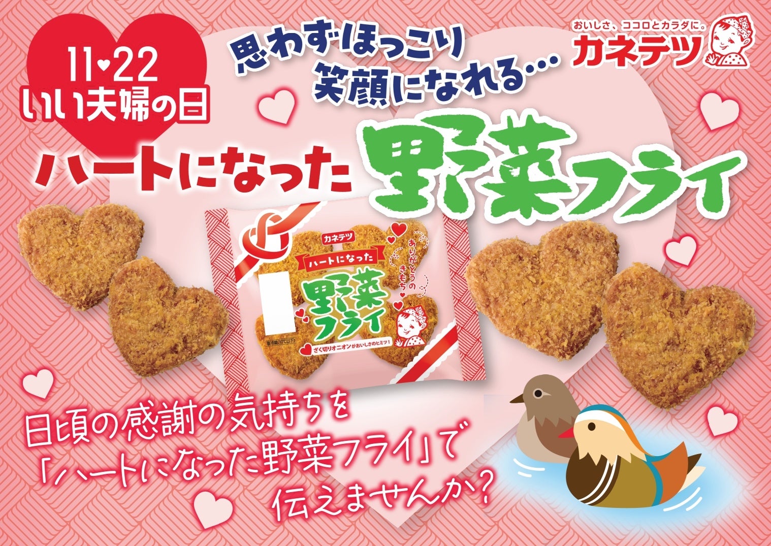 カネテツデリカフーズ株式会社(本社:兵庫県神戸市 代表取締役社長:村上 寛)は、発売より70周年を迎えた感謝の気持ちを込めて、ロングセラー商品「野菜フライ」をハートの形にした「ハートになった野菜フライ」を、2025年11月17日(月)より期間限定で発売します。
