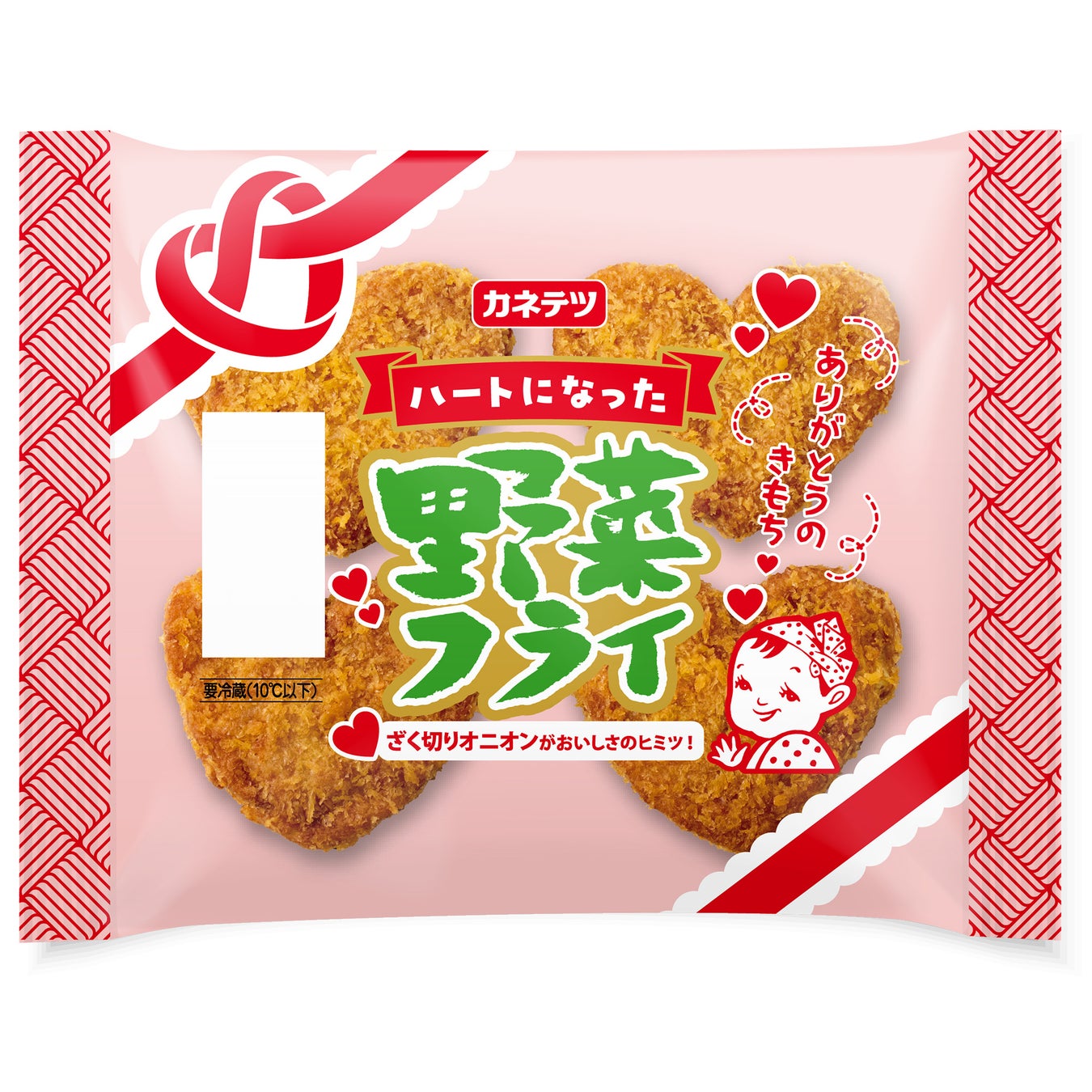 カネテツのタグライン「おいしさ、ココロとカラダに」を体現する、“ありがとう”の気持ちをかたちにしたハート型の「野菜フライ」。1955年の発売以来、皆さまに愛され続けてきたロングセラー「野菜フライ」の味と食感はそのままに、感謝と愛情を込めたミニサイズのハート型で、4個入りの特別仕様に仕上げました。