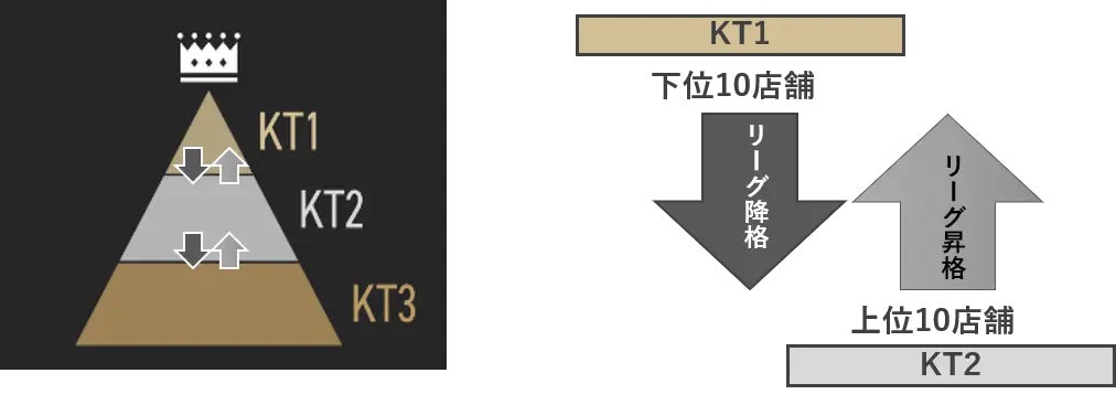 串カツ田中の直営店舗(約150店舗)を3部制のリーグに分け、ポイントを競い合うことで順位付けし、半年ごとに上位リーグへの昇格・もしくは下位リーグへの降格の基準を設けています。