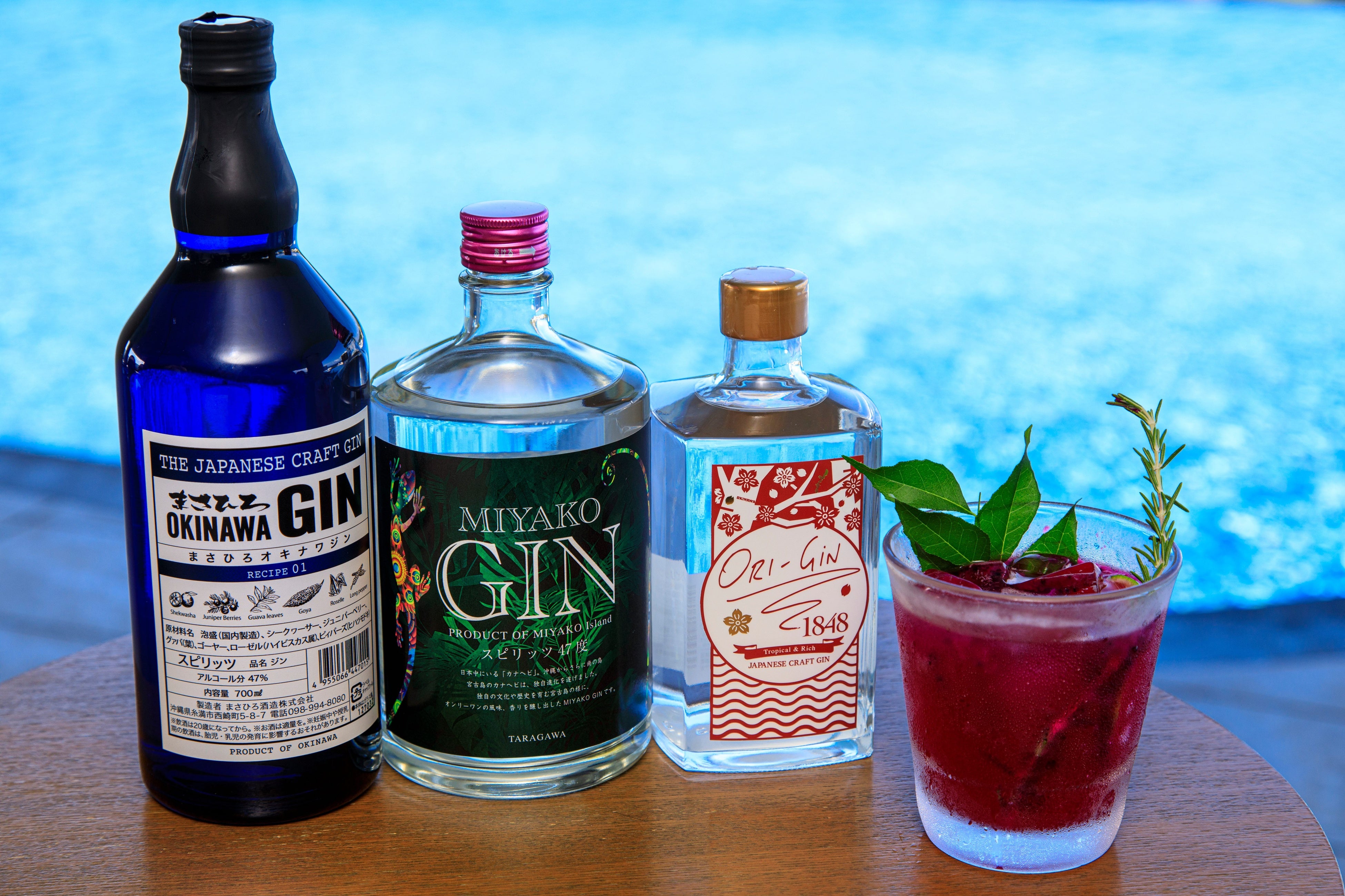CAFE LOUNGE CHILLAX では2023 年12 月31 日まで沖縄県産黒糖を原料にさとうきびを蒸留して作る最も「沖縄らしい」ラムをはじめ、独自の文化や歴史を育む宮古島で作るMIYAKO GIN や沖縄発の和製クラフトジンを産んだ「まさひろ酒造」のOKINAWA GIN 等8 種類のクラフトラムと3種類のクラフトジンを取り揃えております。ホテルスタッフが厳選したラインナップとともに、沖縄の自然の恵みと伝統製法が融合した沖縄クラフトラム・ジンの魅力をご堪能ください。