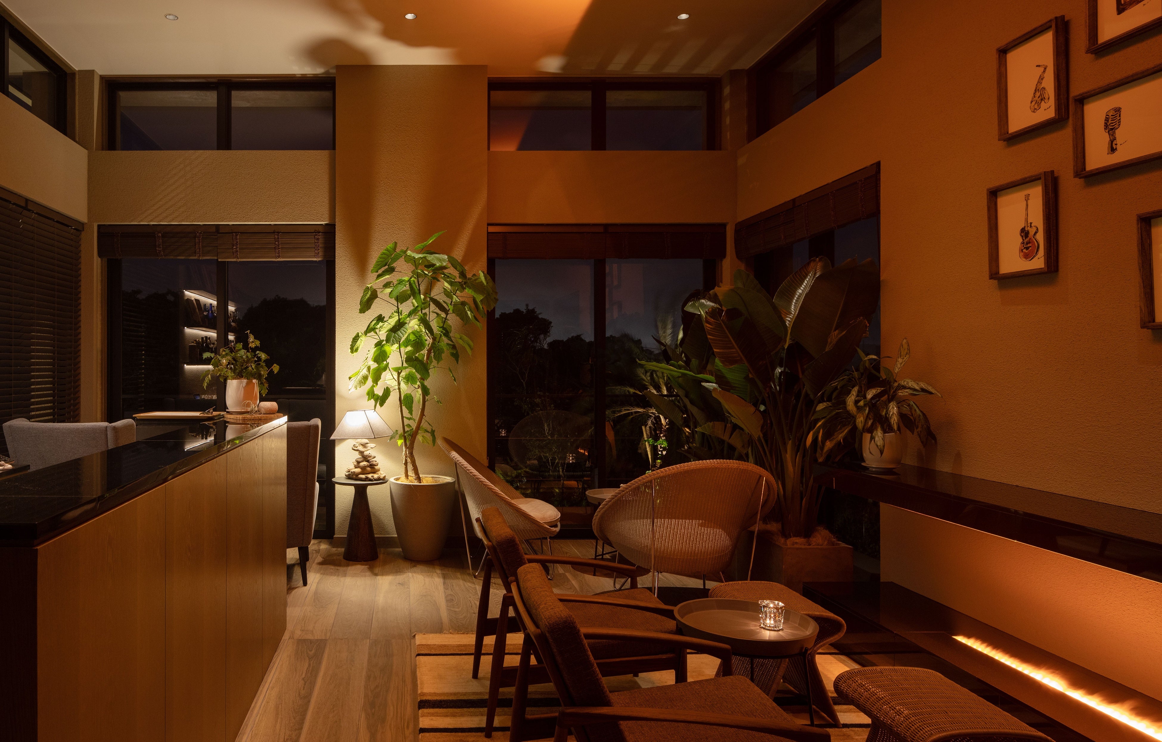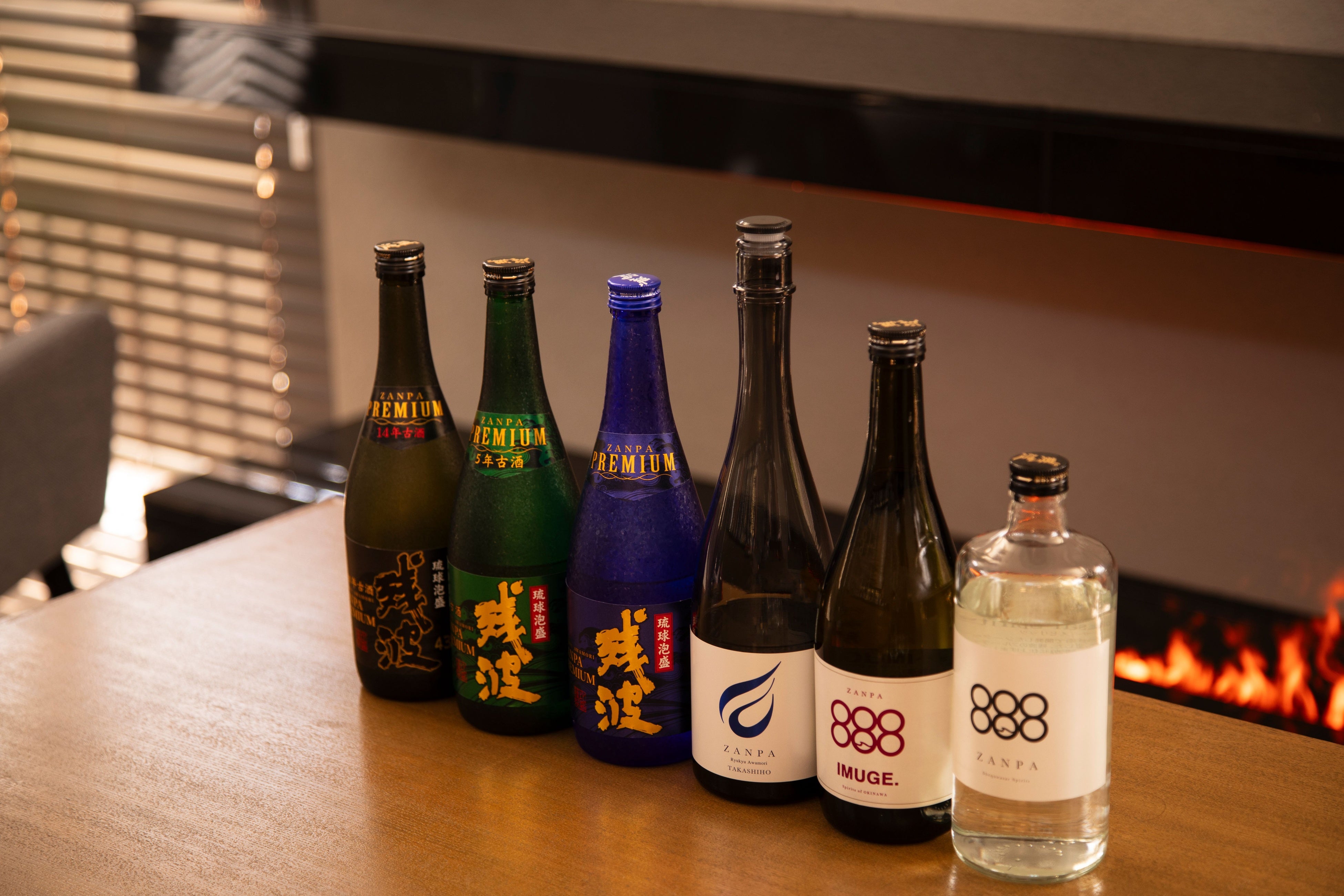 BAR ZANPA は、「龍ゴールド」や「古都首里」などの代表的な銘柄、宮古島のナポレオンとの異名をもつ池間酒造の「瑞光12 年古酒」など沖縄本島の北部、南部、さらには離島の酒造所の名酒を40 種類取り揃えており、暖炉の炎が揺れる落ち着いたライティングで、沖縄の名酒を愉しめる寛ぎのスポットです。