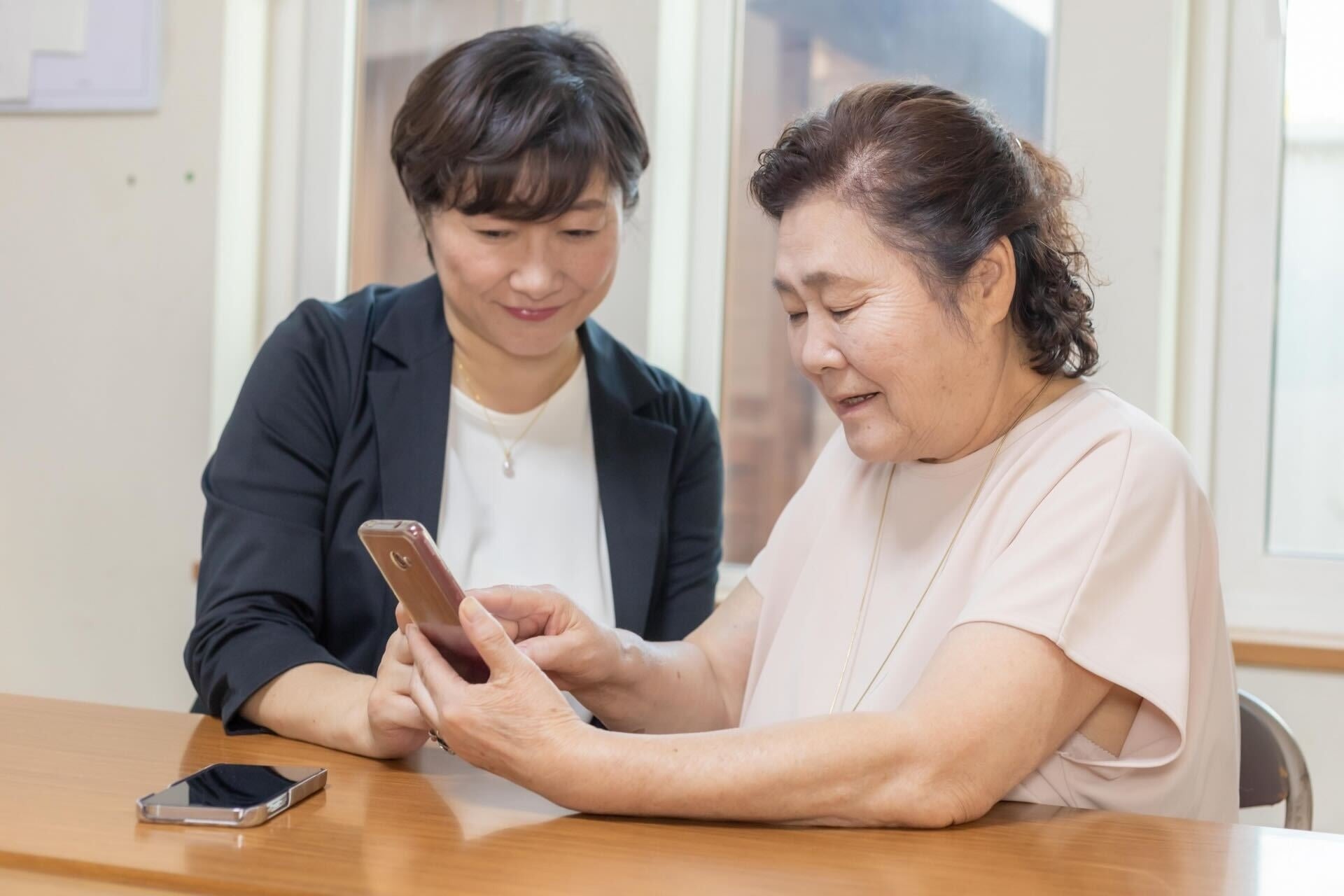 地域のデジタルデバイド解消に向け、シニア層向けにスマートフォンの使い方を教えてくれる「スマホサポーター」を育成。