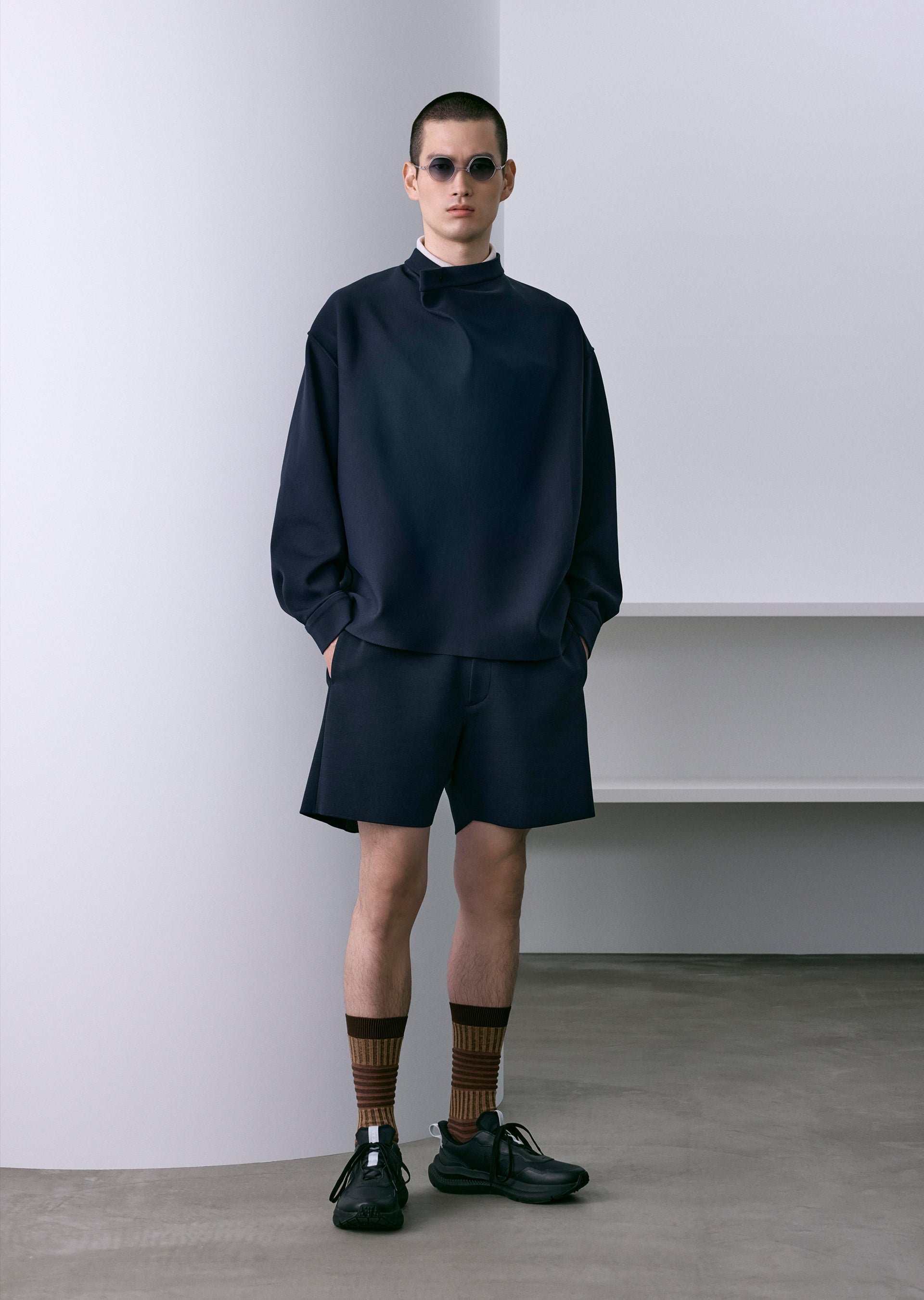 フロントからテンプルにかけてのしなやかな一本線を描くようなイメージは、一本の糸から編まれるCFCLのニットウエアの印象に重ね合わせています。第1弾・第2弾で展開してきた一山スタイルを、プラスチックフロントで表現しました。ノーズパッドを用いないことで、鼻元にすっきりとした印象をもたらし、本モデルならではのスタイルを生み出しています。フロントデザインは、ラウンドとヘキサゴンの2型を、それぞれ2サイズでご用意。フロントのプラスチックには、単色・ササ柄・ツートンカラーを採用し、表情の幅を広げています。レンズは単色に加え、緩やかに濃度が変化するオリジナルのグラデーションを取り入れています。また、オプティカルも各型1サイズにて展開します。