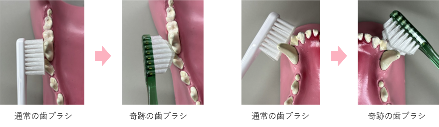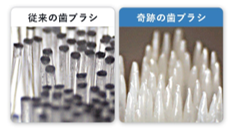 特許製法のピラミッド形状ブラシが歯の「すきま」に入り込み、ブラシを当てるだけで汚れをかき出す構造です。