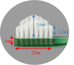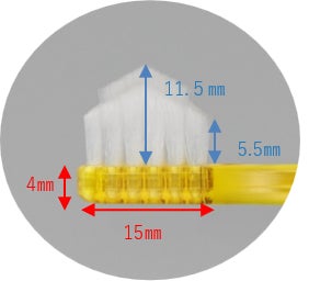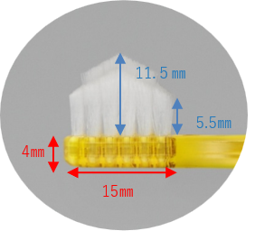 従来の均一な植毛ではなく、歯面と歯間を同時にケア。高さ1.9mmの段差設計。