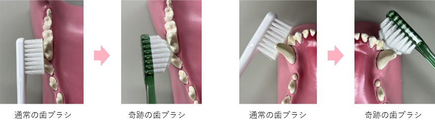 〈犬用 奇跡の歯ブラシ〉は、犬特有の歯の構造や歯磨きの難しさに着目し設計された歯ブラシです。