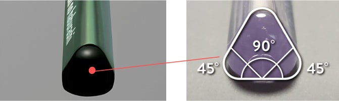 三角だから、持つだけで正しい角度を固定し、