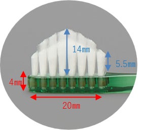 毛先が細いブラシは、歯の表面や歯間の歯垢をかき出しやすく、口腔ケアに適しています。 -