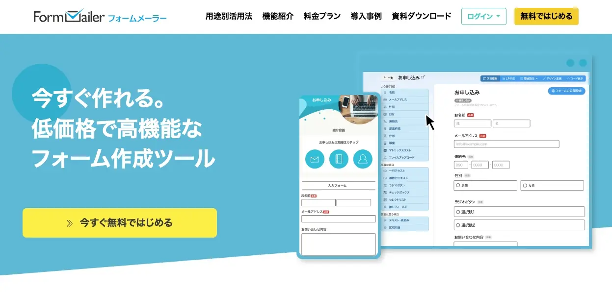 各種フォームやページをドラッグ&ドロップの簡単操作で作成できるSaaS型サービスです。