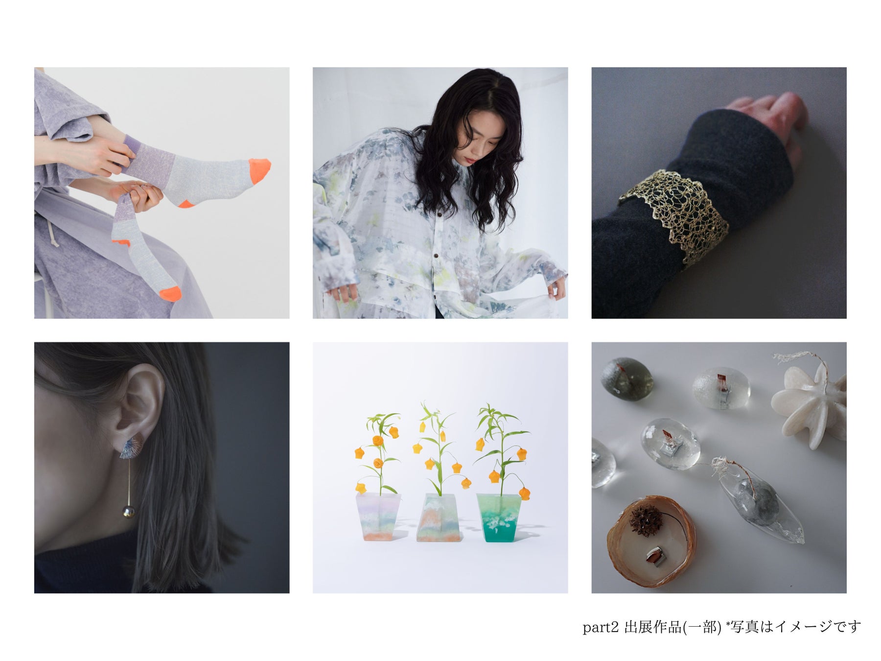 to-te(ファッションデザイナー)/toko aoki(ジュエリー作家)/MEMENTO PATTERN.(ジュエリーブランド)/ON glass jewelry(ジュエリーブランド)/HARUNA OIKAWA(アーティスト・ガラス作家)/Ceramic art accessory 千花(陶磁アクセサリー作家)/YURUKU(バッグブランド)/YYossYY(ジュエリーブランド)/POTTENBURN TOHKII(ファッションブランド)/ROVAROVA(ジュエリー・創造物)/Douze(バッグデザイナー)/atelier yamani(ファイバーアーティスト)/NIZYU KANO|にじゅうかのう(バッグデザイナー)/落合可南子(ろう作家)/Anima uni(ジュエリー作家)/FUMI NARASAKI(テキスタイル作家)/きたのまりこ(ジュエリー作家)/ so/et(籠作家)/KOHAN(版画・装身具作家)/MAITO 植物染色研究所(植物染色プロダクト)/Hitomi Hashimoto(金工・装身具作家)/siki(ジュエリーブランド)/moco(時計クリエイター)/ANNAK(革製品)