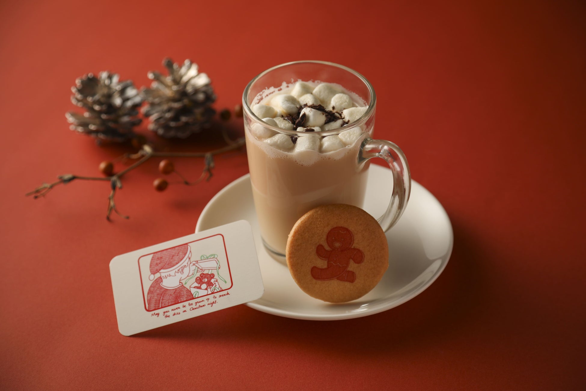 ジンジャーブレッドマンまたはテディベアがプリントされたクッキーや、メッセージを記したカードもご用意しています。心もあたたまるドリンクをぜひお楽しみください。