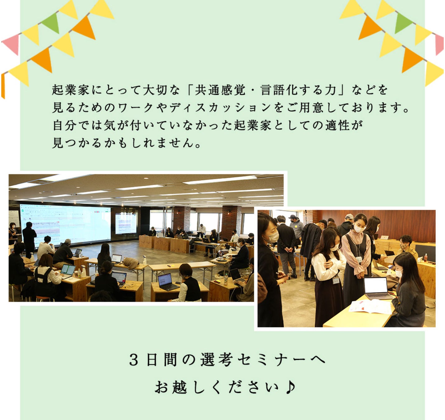 >>>> 合格者5名(最大)の方には、2年間の起業資金とお給料としておひとり1000万円ずつを支給