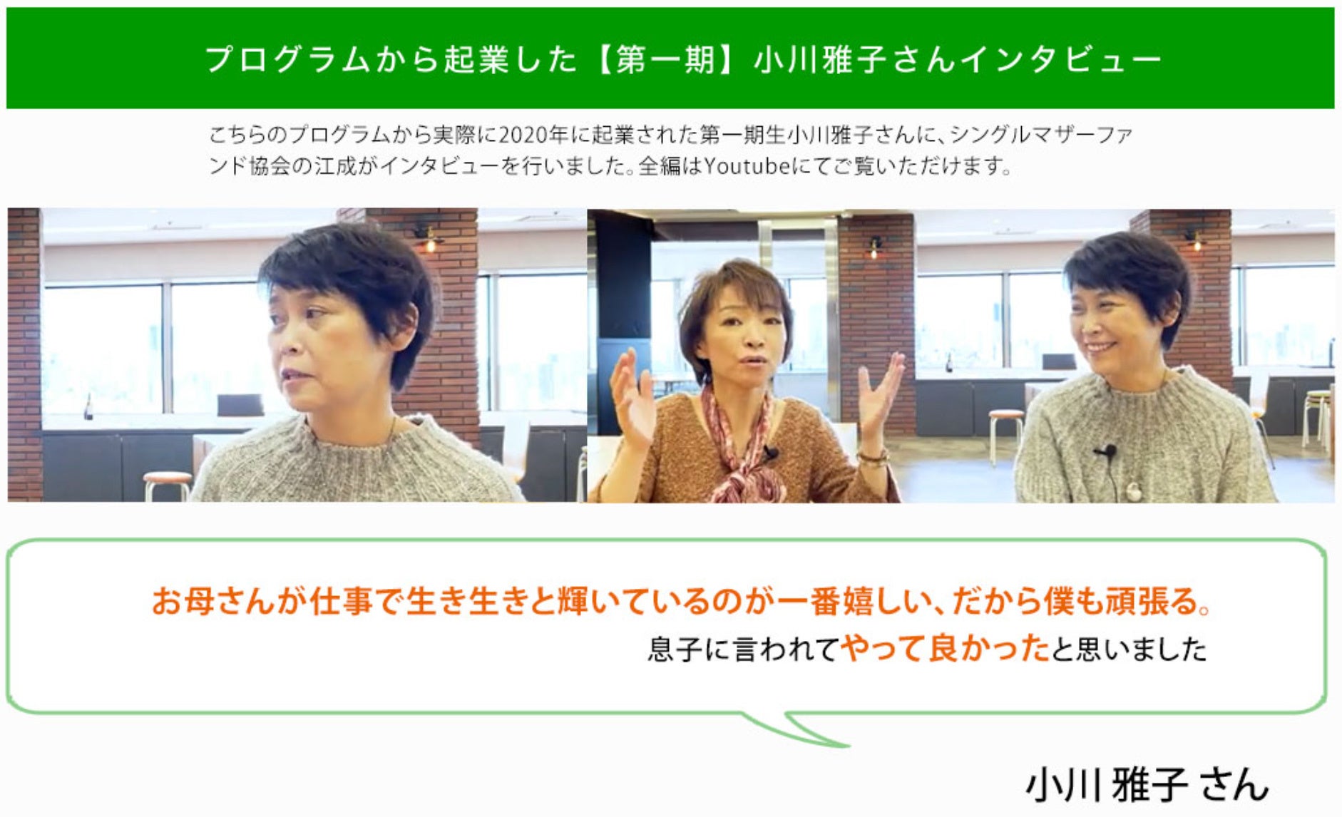 第1期では、採択されなかったシングルマザーの中からも起業家が誕生するなど、たくさんのこのプログラムの参加者がその後に活躍しています。