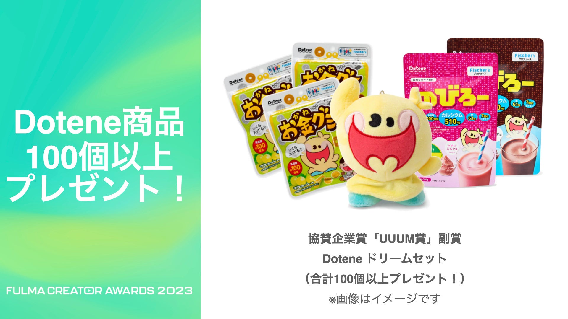 UUUM賞の受賞者には、Doteneの商品100個以上の詰め合わせ「Doteneドリームセット」がプレゼントされます。
