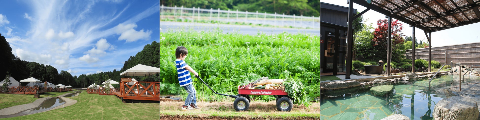 (コテージ、グランピング、貸農園、温浴施設、カフェ、BBQ場、アウトドアアクティビティ、FC事業)