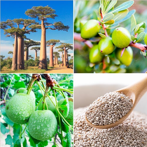 ビタミンやオメガ脂肪酸をバランスよく含み、“魔法のオイル”と呼ばれる「バオバブオイル*5」・オレイン酸を豊富に含有する「マルーラオイル*6」・コールドプレス製法で抽出した「チアシードオイル*7」・オーガニックの「アルガンオイル*8」・高保湿の「セラミド類似成分」を配合。