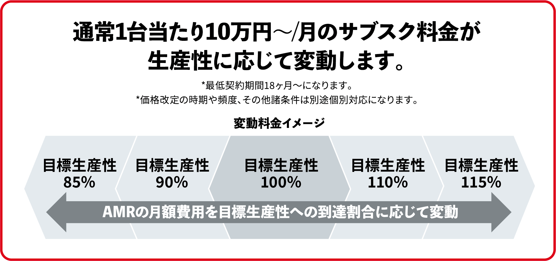 通常1台当たり10万円 / 月のサブスクリプション料金が生産性に応じて変動します。