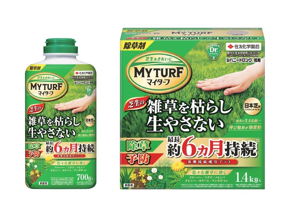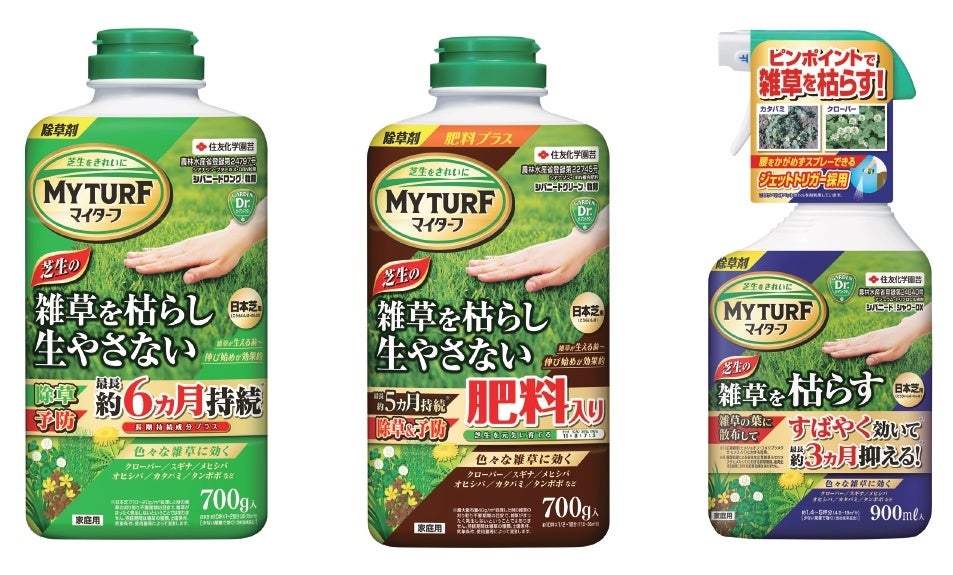 家庭園芸用薬品・肥料等を製造販売する住友化学園芸株式会社(本社:東京都中央区/代表取締役社長:梅田公利)は手間をかけずに芝生をきれいに楽しみたいというお客様のご要望にお応えし、芝生ケアシリーズの新ブランド「マイターフ」を新発売しました。「マイターフ」ブランドでは、芝生の中の雑草対策用の除草剤3アイテムをラインナップしています。