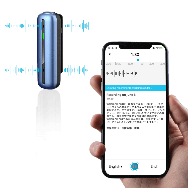 1ボタンで文字起こし・翻訳・録音を。音声データを瞬時に「翻訳」&「テキスト化」AI翻訳ボイスレコーダー Wooask S01 通常販売開始