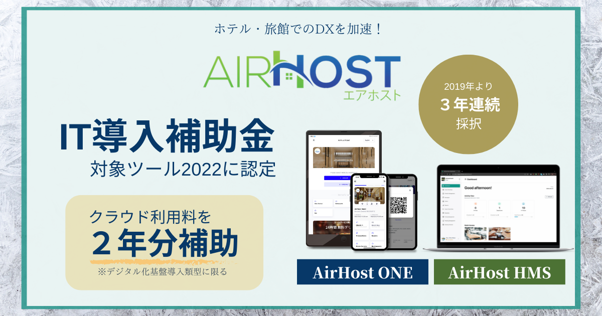 エアホスト、IT導入補助金2022 支援事業者として認定 非接触チェックイン、ホテル・旅館から観光DXを加速