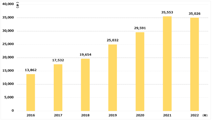 本資格は、賃貸住宅の運営や管理に従事する方はもちろんのこと、不動産業界に興味のある方、将来的に不動産・賃貸管理に関連する知識や技能を身につけたい方にも、強くおすすめできる国家資格です。本資格の認知度は年々上昇し、昨年の資格試験の申込者数は、2016年と比較すると、約2.5倍と大幅に増加しています。また、令和5年4月の合格者数の合計は77,598名に達しています。合格者の年齢層は幅広く、20代が9%、30代が24%、40代が31%、50代が25%、そして60代が10%となっており、様々な世代から本資格への関心が高まっていることが分かります。