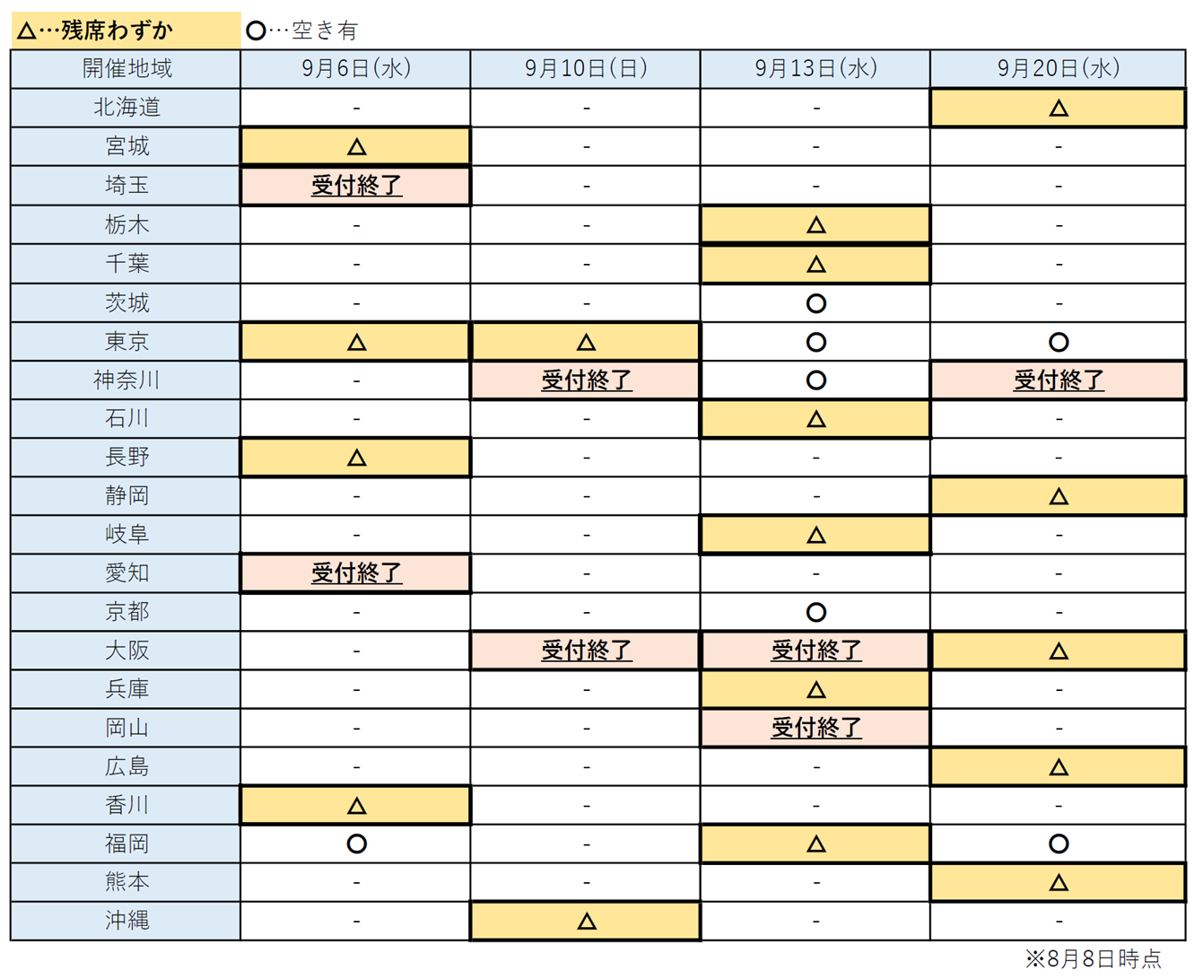 1. 講習日程:9月6日(水)・9月10日(日)・9月13日(水)・9月20日(水)