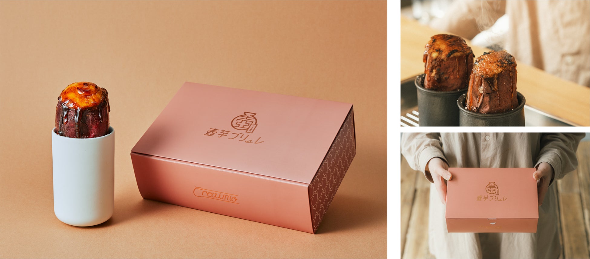Creaimoオンラインストアでは、口に含んだ瞬間とろけるお芋スイーツ「壺芋ブリュレ」「蜜芋ブリュレ」を全国どちらからでもお楽しみいただけます。壺芋ブリュレは、時期に合わせ厳選したさつまいもを一つ一つ丁寧に壺で焼くことでとろとろの焼き芋を実現。そこにたっぷりのカスタードが混ざり合い、より一層口に含んだ瞬間の食感をお楽しみいただけます。蜜芋ブリュレは、ねっとり”濃蜜”な焼き芋に口溶けなめらかなカスタードクリーム、パリッと香ばしいカラメルを一口サイズでお届け。ご自宅に届いたら、付属のシュガーをかけてバーナーでジュワッと炙り、出来立てのキャラメリゼとカスタード、焼き芋の贅沢な味わいをご堪能ください。売り切れ必至となっておりますので、公式LINE*をご登録くださいませ。完売前に販売の通知を受け取ることができます。