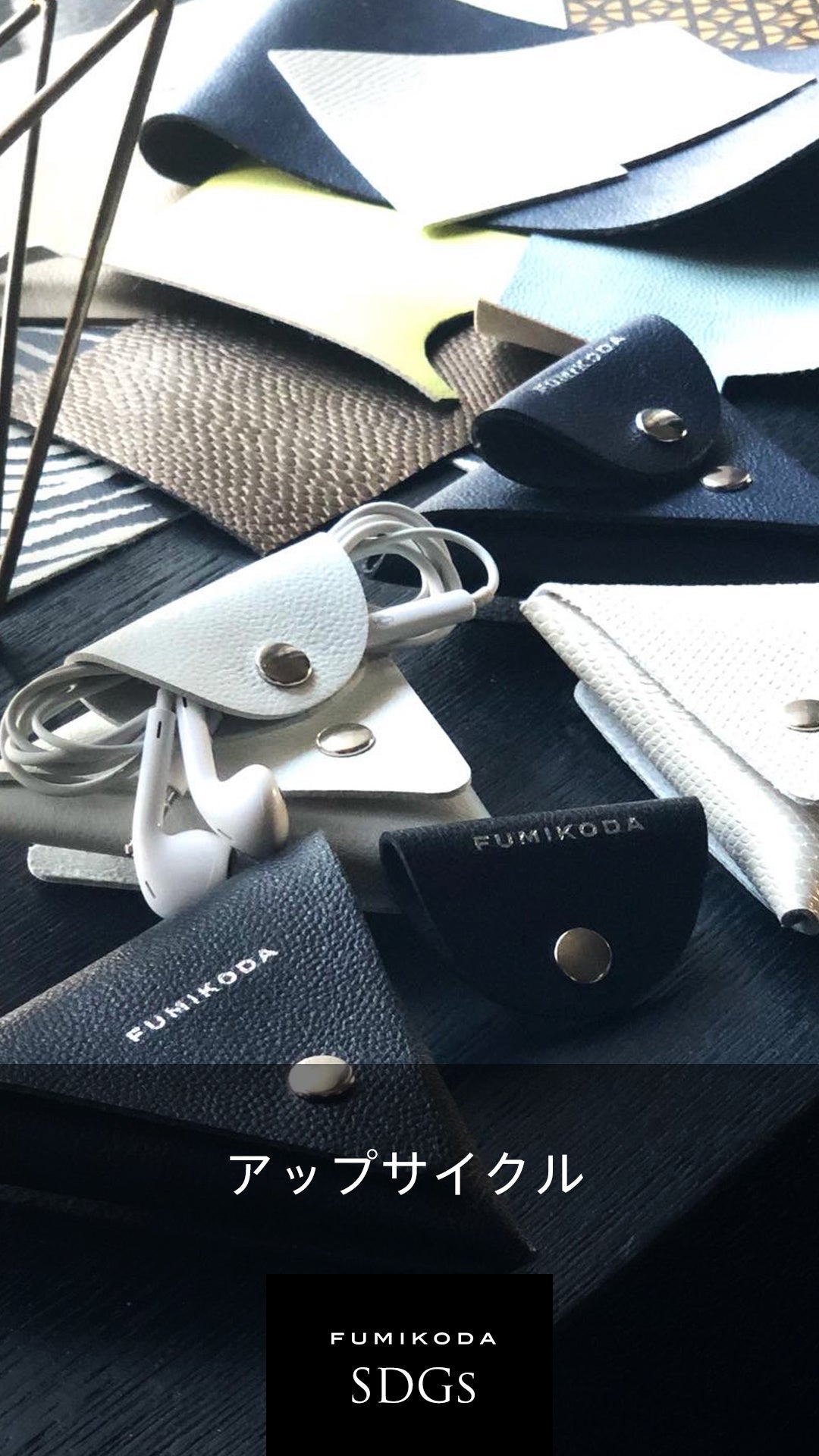 資源を無駄なく有効利用したい。職人と知恵を出し合い、バッグを生産した際に余ってしまった生地のハギレをうまくアップサイクルした機能的なアイテムを製作しました。ギフトとして、またはバッグのワンポイントアクセサリーとしてお使いいただける小物をプロデュースしています。
