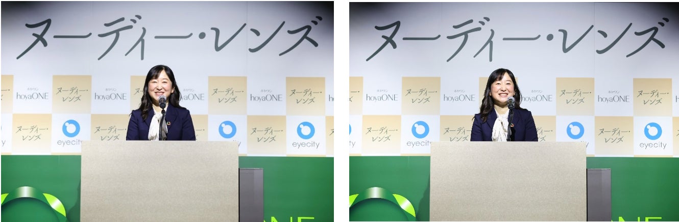 そして、HOYA株式会社 アイケアカンパニーが事業展開するコンタクトレンズ専門店「アイシティ」が今年で50周年を迎えることに触れ、これまでの歩みや取り組みについて紹介。hoyaONEについては、「これからの時代を担う若い世代の共感と支持をどう獲得するかを考え、開発に取り組んでまいりました。」と開発背景について説明し、これまでに発売された商品ラインナップが「流行を取り入れた一過性のブランドとしてではなく、世代を超えて長く愛される特別にブランドになることを目指してまいります。」と抱負を述べました。
