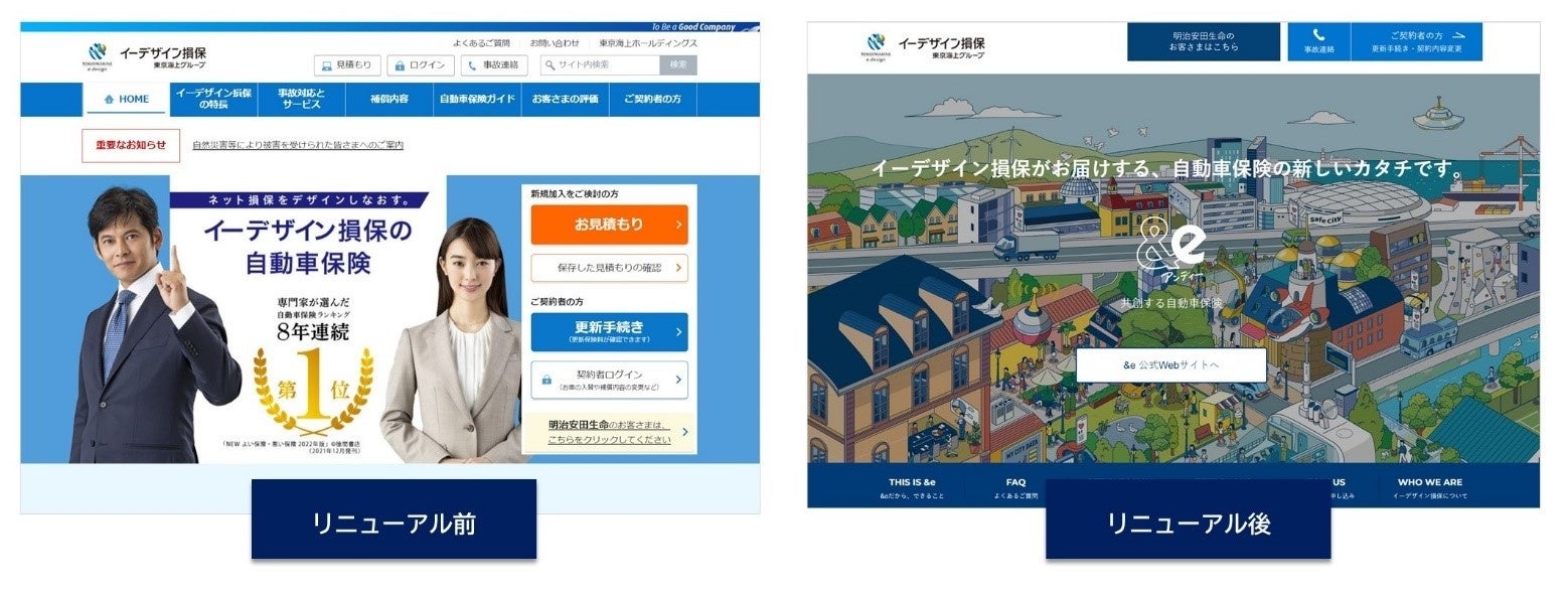 イーデザイン損害保険株式会社(取締役社長 桑原 茂雄、以下「当社」)は、2022年4月22日(金)より当社Webサイト(https://www.edsp.co.jp/)を全面リニューアルし、2021年11月に発売した共創型自動車保険「&e(アンディー)」(以下「&e」)への一本化を加速させます。これに合わせて、従来の「イーデザイン損保の自動車保険」(以下「従来商品」)にご契約中のお客さまに契約更新のタイミングで&eへの切り替えをご案内していきます。これにより、約70万件のお客さまが2~3年以内に&eに切り替えていただくことを想定しています。