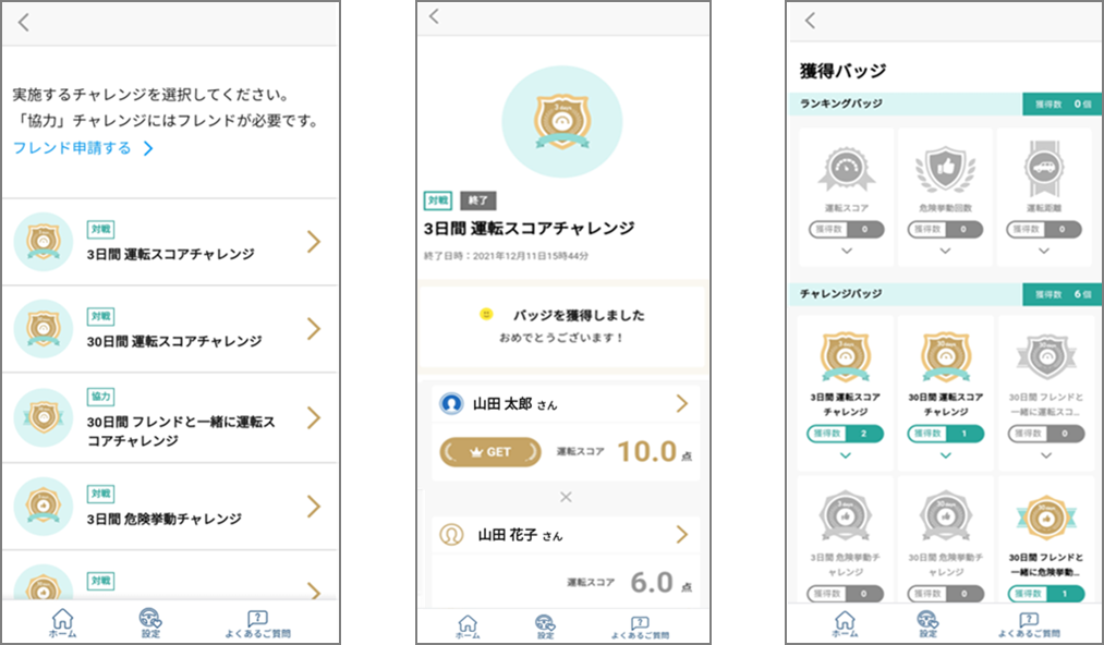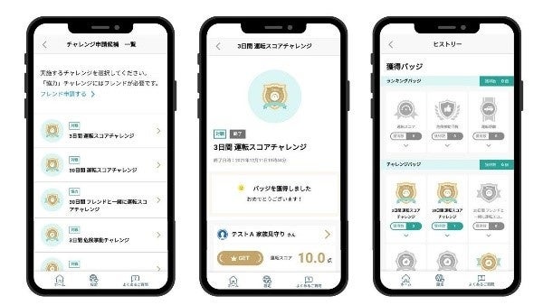 &eアプリを利用しているご家族やご友人と運転スコアをランキング形式で共有できる「フレンド機能」に加え、さまざまなミッションにチャレンジしてバッジを集め、誰でもゲーム感覚で安全運転に取り組める「チャレンジ機能」を2022年1月に新設しました。