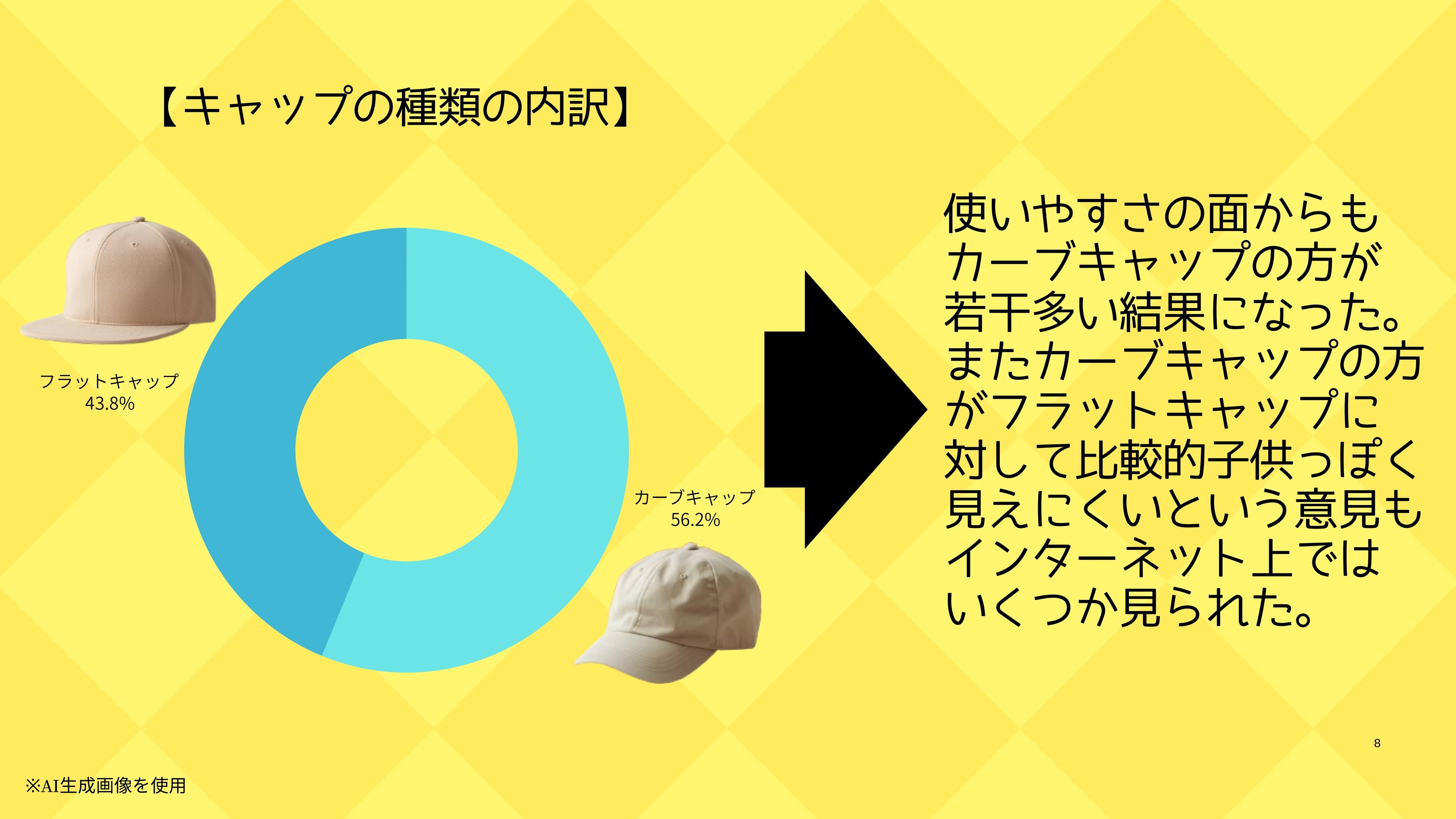 フラットキャップとカーブキャップの愛用者それぞれの属性の違いも伺える、とても良いリサーチだったのではないでしょうか。