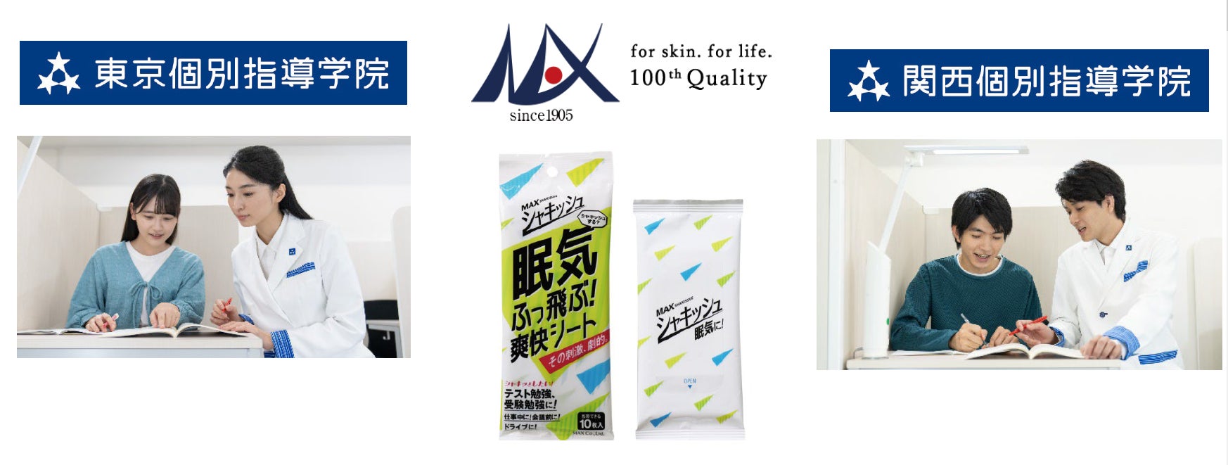 マックスからは2023年にも受験生応援として入浴剤をご提供いただきました。今年は東京個別指導学院と関西個別指導学院に通う1万5,000名の高校受験生・大学受験生に対して、『眠気ふっ飛ぶ!爽快シートシャキッシュ』をご提供いただけることになりました。2025年1月8日から、心を込めて267の全教室で受験生に手渡しします。