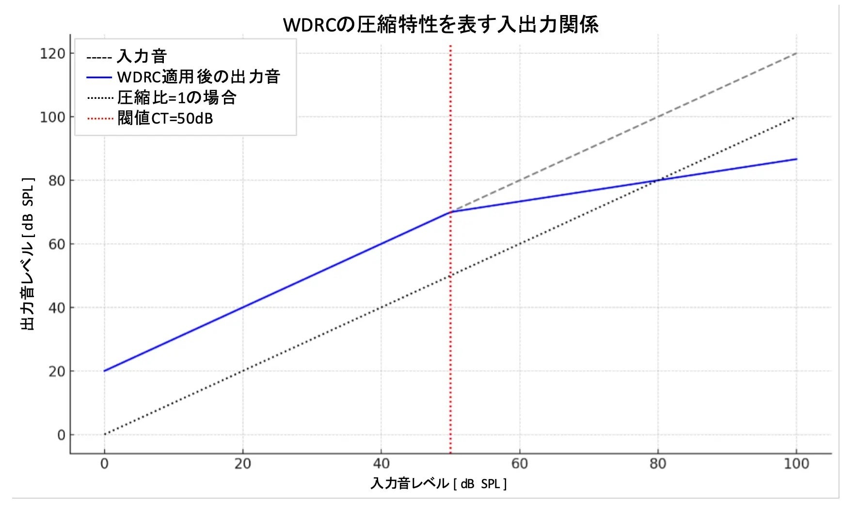 WDRCは“音が大きくてビックリする”とか“小さい音が聞き取りにくい”ことを防ぐための自動音量調整システムとも言われているAI制御技術です。簡易的に言えば、小さな音は増幅し、大きな音は適度に抑制することにより、突然の音に驚いたり、音が小さすぎて聞こえないといったストレスを軽減します。