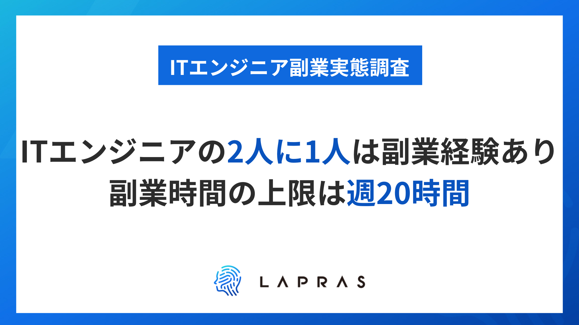 〜LAPRAS、ITエンジニア407名の副業実態調査結果を公表〜