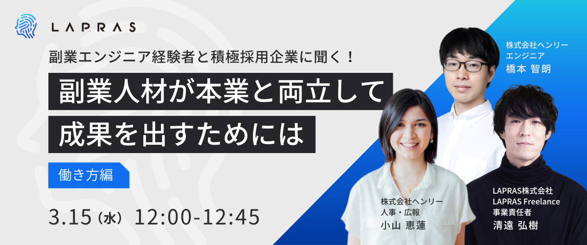 そして、何よりも副業は多くの方にとって新しいスキルの習得や経験を得る機会となっています。エンジニアの成長支援と最善の機会の提供を掲げるLAPRASでは、本調査の結果を踏まえ、ユーザーの方へ副業を通した成長や活躍の機会の提供を今後より一層強化してまいりたいと思います。」