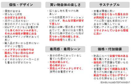 一方で、古着ユーザーのSHIBUYA109 lab. EYEZメンバーからは「古着屋は内装が可愛いことも多い。購入しなくても楽しい場所として知ってもらい、フラッと立ち寄ってほしい」といった声もありました。