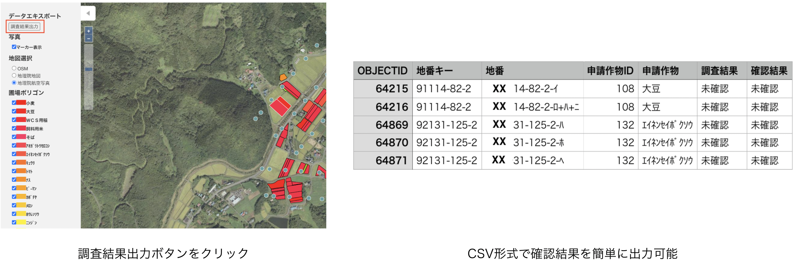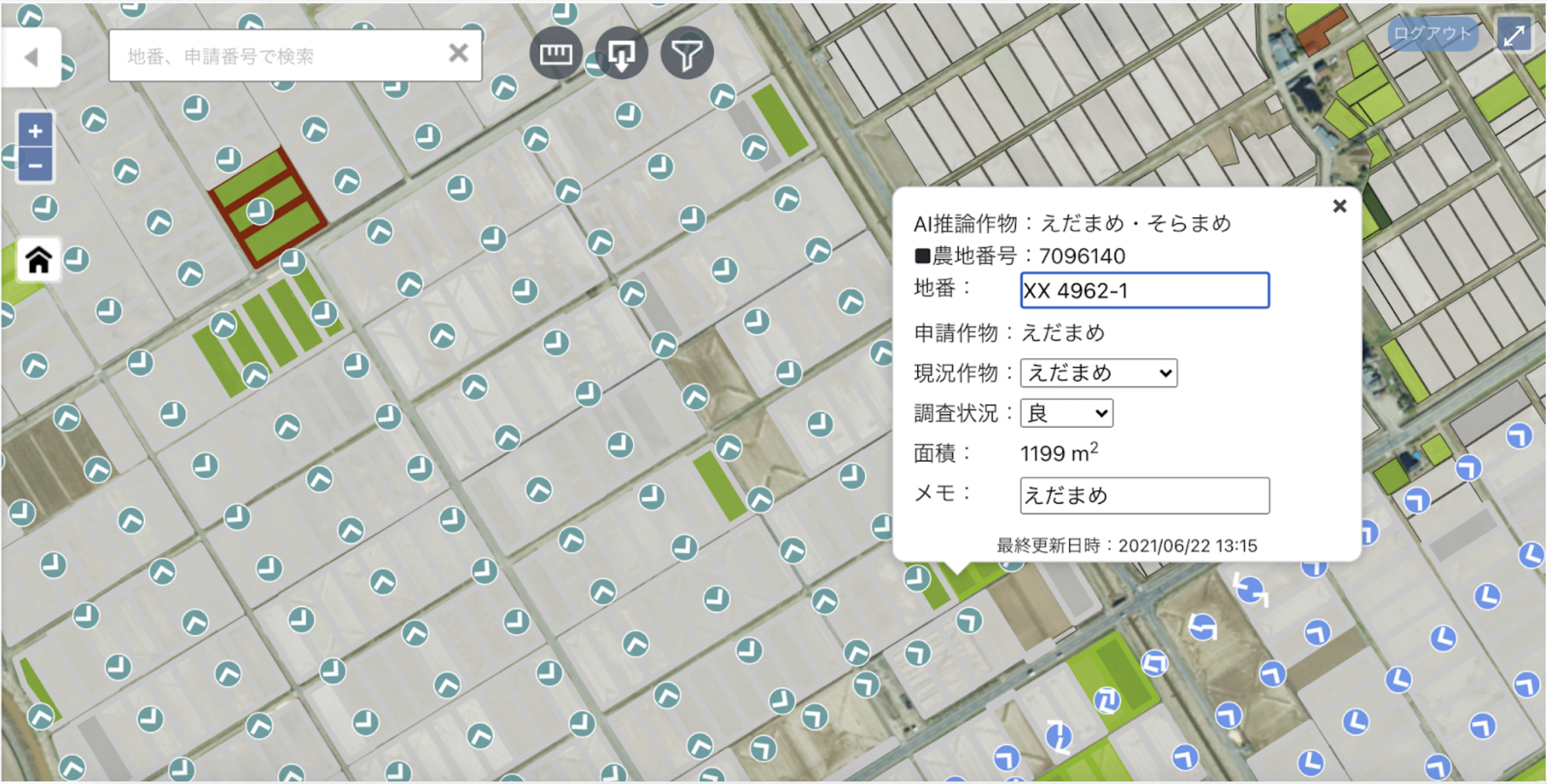 「現地に行かなくて済むだけでなく、ドローンで撮影した画像から人の目視で作物判定する手間も不要になりとても楽になった。」と、ご利用の自治体様からも喜びの声を聞いております。教師データを集めることができれば現在対応していない作物にもAIを適用することができますので、どうぞお気軽にご相談ください。
