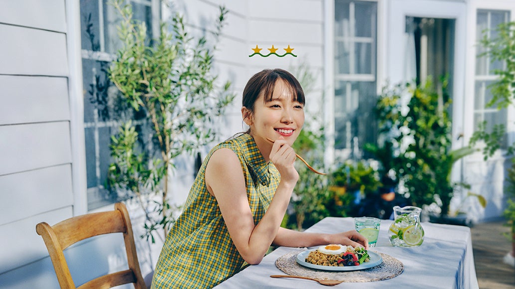 新ビジュアルは、春夏秋冬のあらゆるシーンに「三ツ星ファーム」がある風景を、飯豊さんが食事を楽しむ姿とともに表現しました。また、ブランドムービー「おいしさの数だけ想い出がある」篇では、お客様の日常の食事を支えるブランドとして大切にしたい「毎日のごはんに感動を。」という想いを、温かみのあるテイストで描いています。
