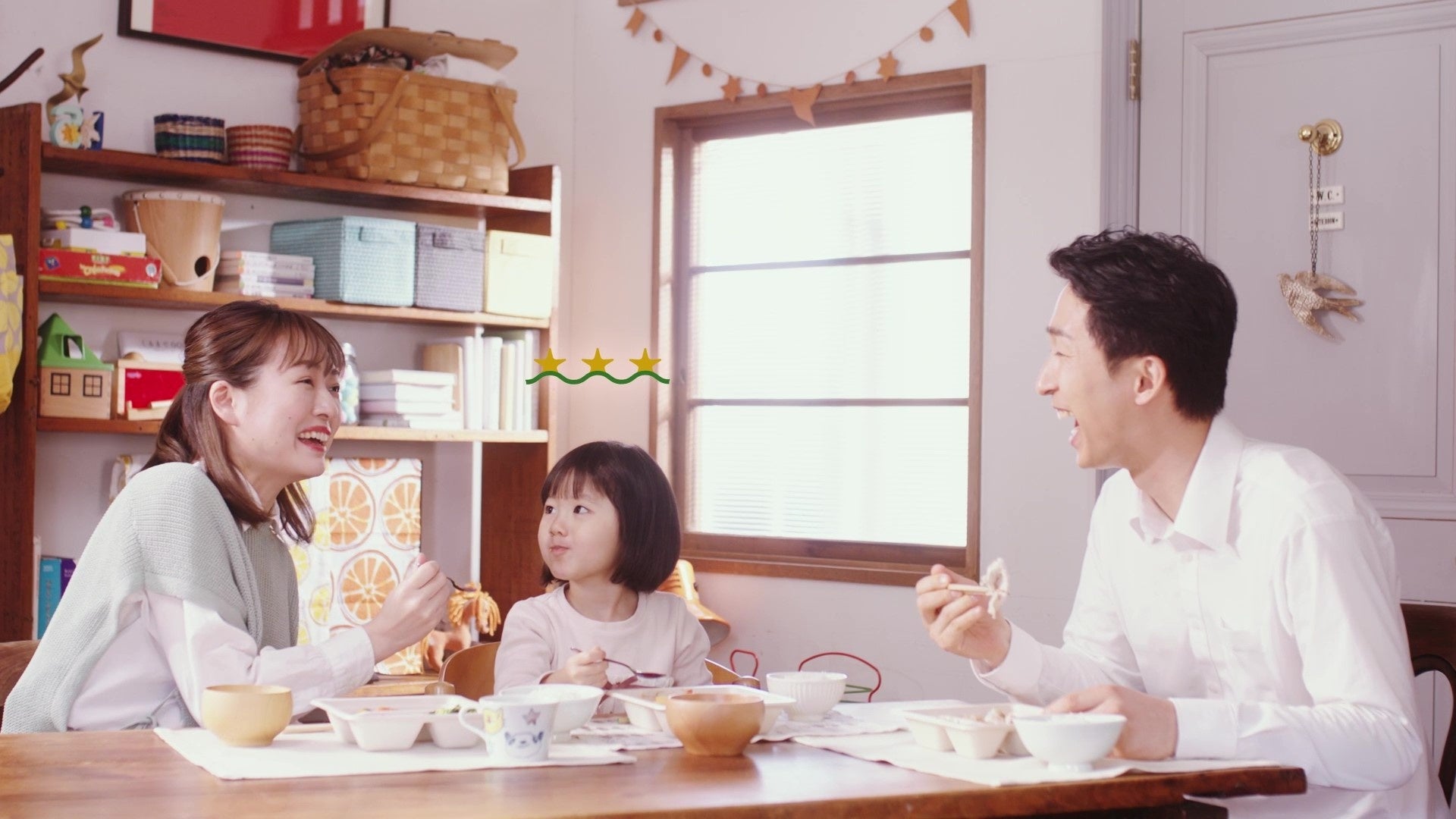 今回新たに制作したブランドムービー「おいしさの数だけ想い出がある」篇では、自宅での仕事がひと段落した飯豊さんが、ランチに「三ツ星ファーム」を楽しむ何気ない日常を描いています。色とりどりのおかずが入った「三ツ星ファーム」の冷凍おかずプレートをおいしそうにほおばる自然体な飯豊さんと、カップル、小さなお子さんがいるご家族、お年寄りなど様々な方々の食事のシーンで笑顔が生まれる様子を描いた、温もりを感じられるムービーが完成しました。