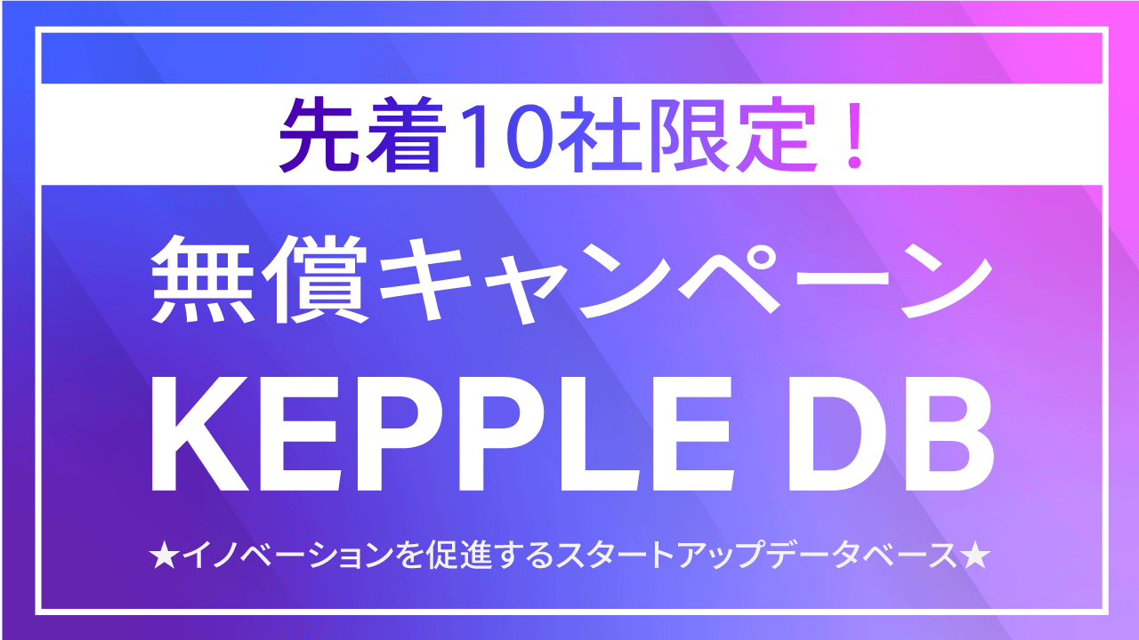 株式会社ケップル(以下、ケップル)は、スタートアップ企業への出資やオープンイノベーションなど、イノベーション活動に取り組む事業会社や投資家向けのスタートアップデータサービス「KEPPLE DB」のリリースに伴い、期間限定の無料キャンペーンを実施いたします。豊富なスタートアップ企業情報に加えて、リサーチサポートやCRM機能との連携もお試しいただけます。