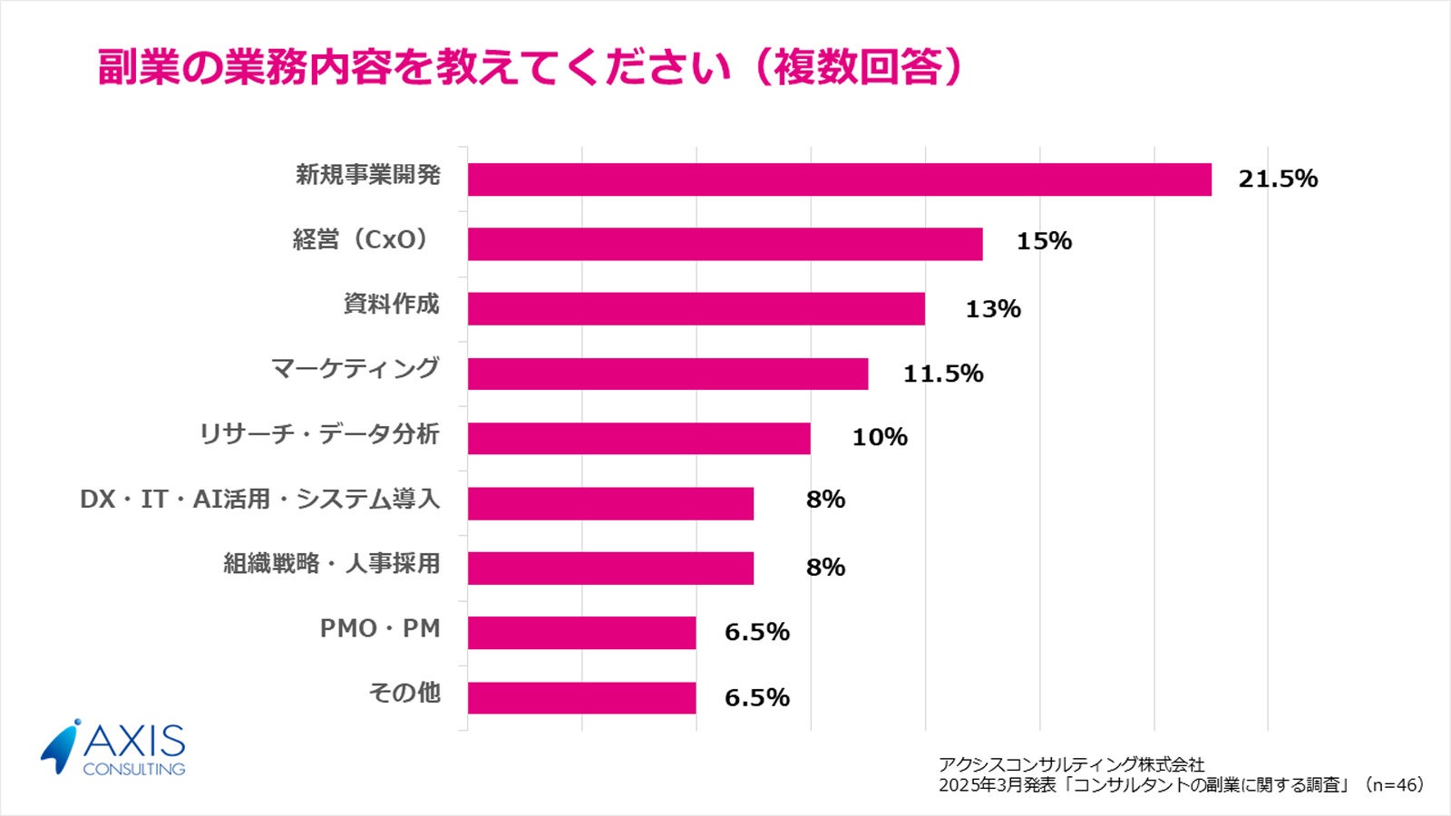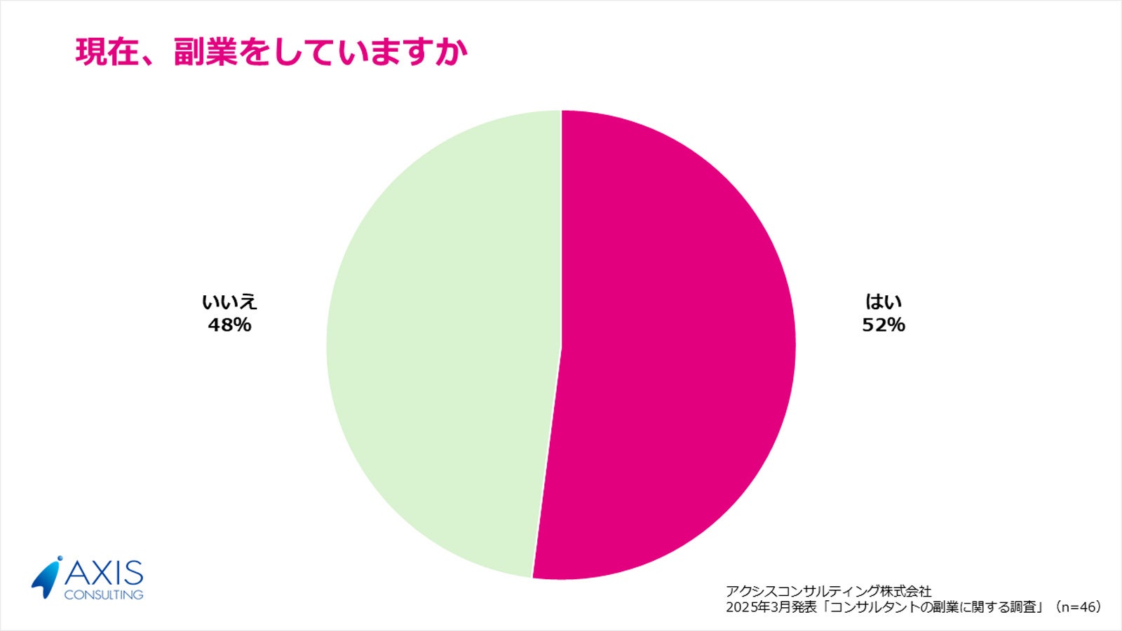 アクシスコンサルティング株式会社(本社:東京都千代田区/代表取締役社長 COO:伊藤 文隆)は、当社スポットコンサルティングサービス「コンパスシェア」に登録するコンサルタントを対象に、副業に関する調査を実施しましたのでその結果をお知らせいたします。