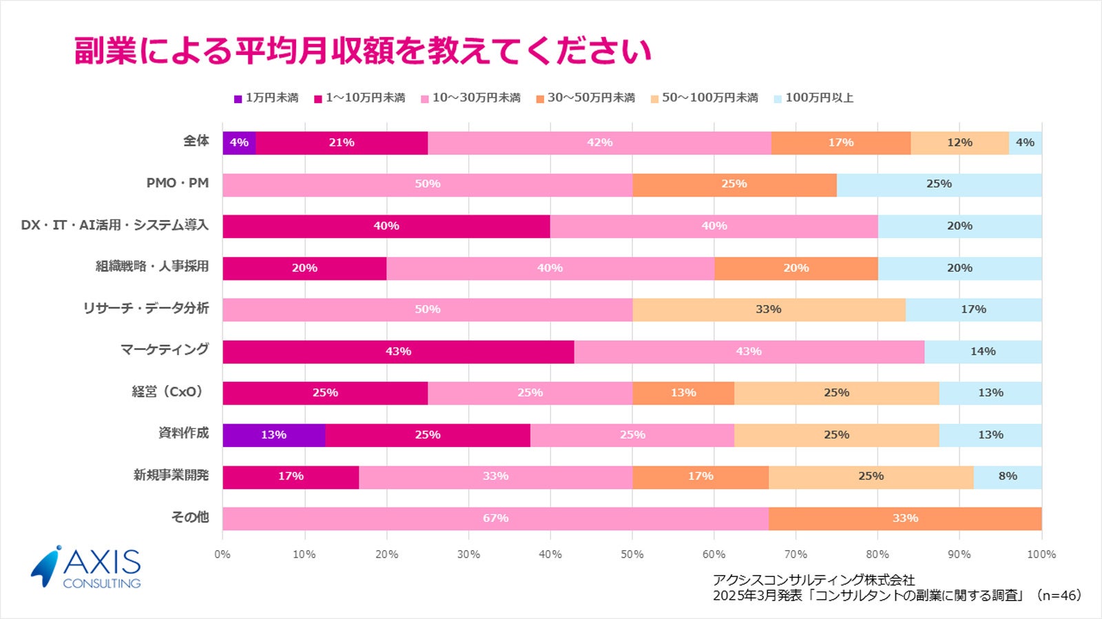 コンサルタントの副業月収は10~30万円が最多。「新規事業」「CxO」など上流業務が人気