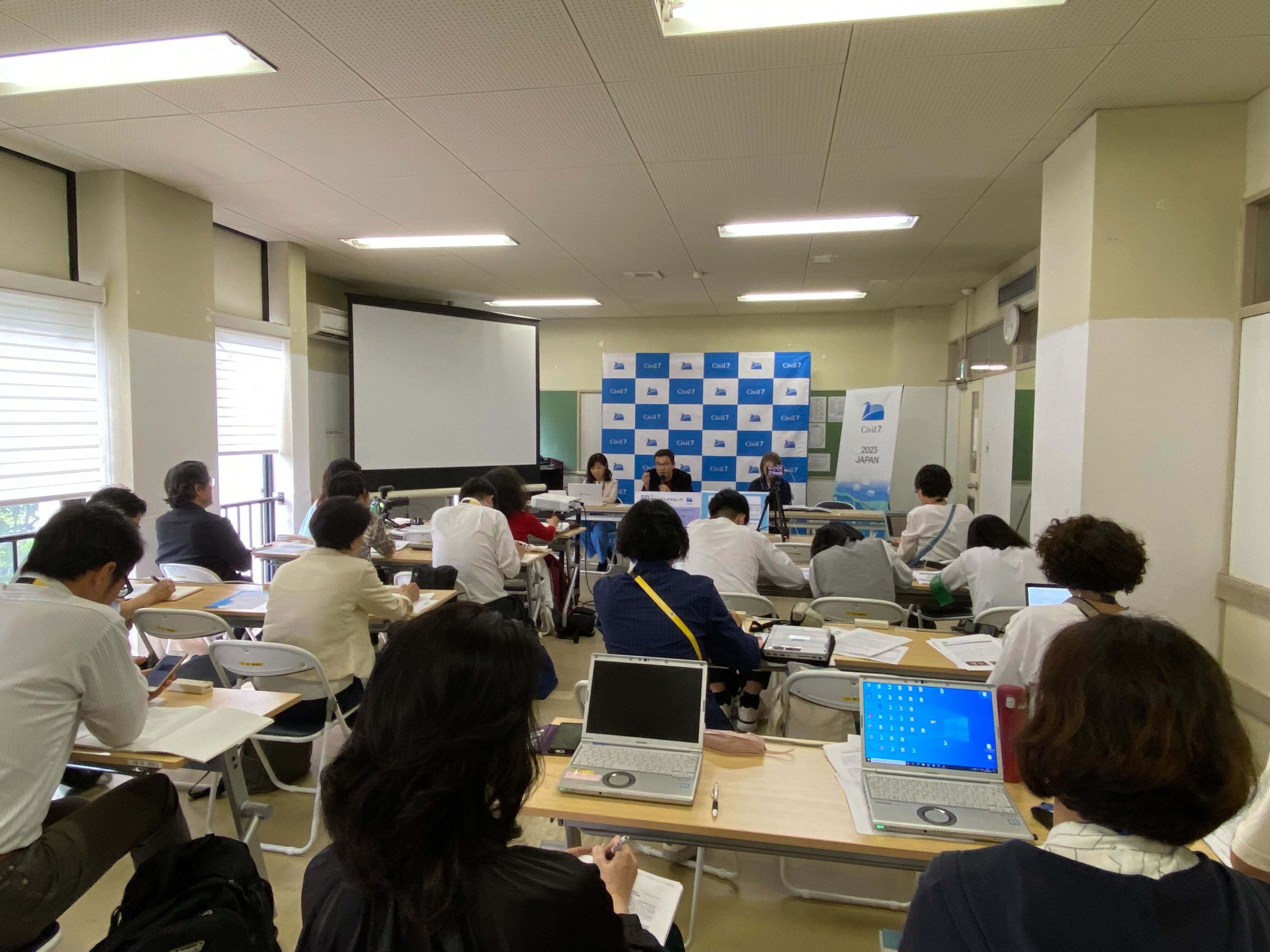 (5月19日、広島市)本日より21日まで開催されるG7広島サミット首脳会合に向けて、G7公式エンゲージメントグループであるCivil 7(市民社会、C7)が定例記者会見を開催、5月13-4日に新潟市で開催されたG7財務大臣・中お銀行総裁会議および、長崎市で開催されたG7保健大臣会合でそれぞれ提出された大臣会合宣言および関連文書について問題提起が行われました。