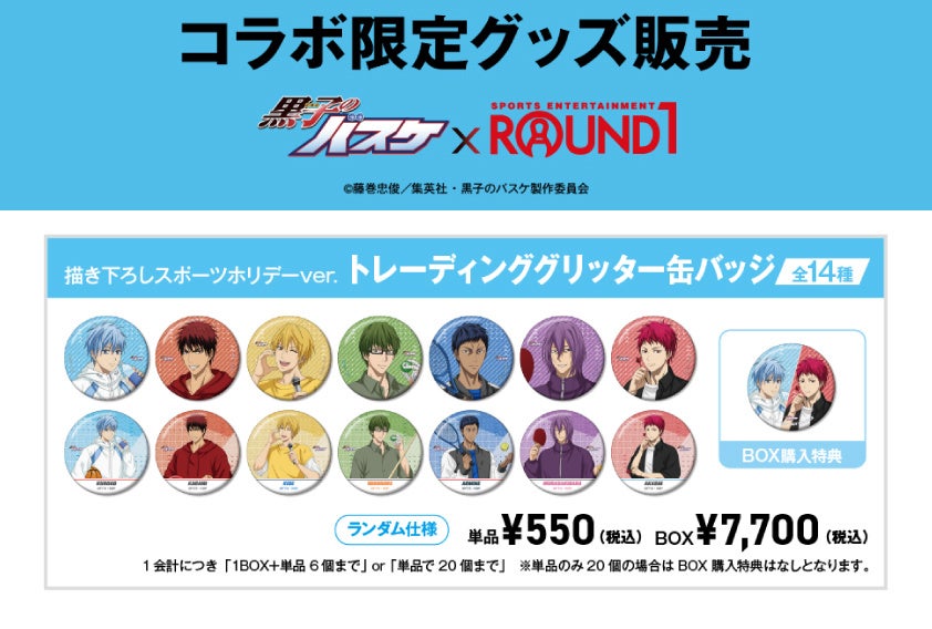 株式会社ラウンドワンジャパン(本社:⼤阪府⼤阪市、代表取締役社長:川口 英嗣)は、この度、2025年7月18日(金)から「黒子のバスケ」×ROUND1 コラボキャンペーンを実施いたします。