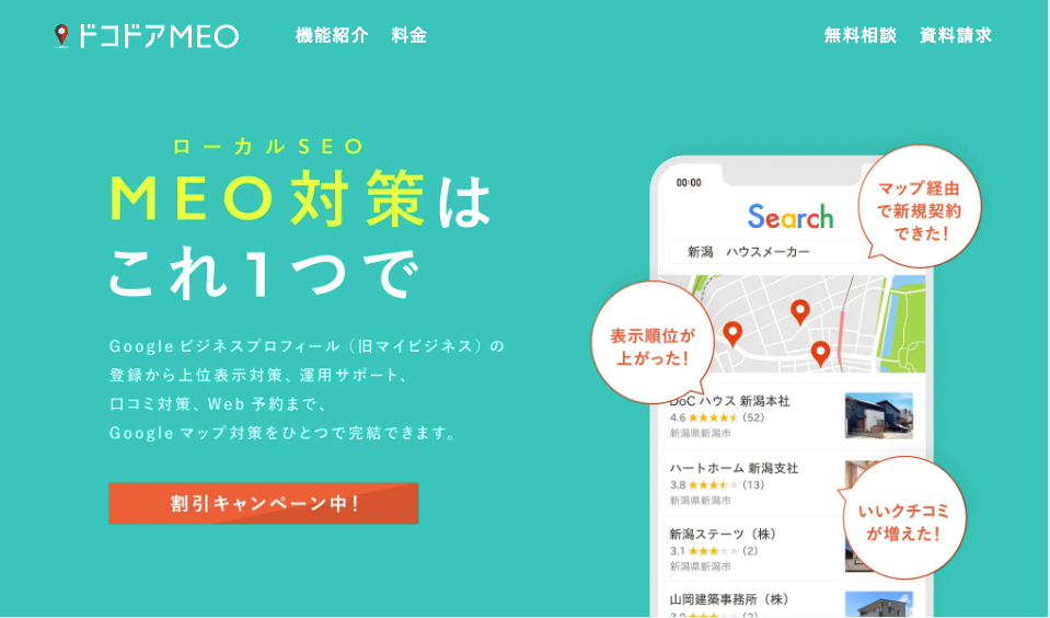 - プラン内容その2:MEO対策サービス「ドコドアMEO」